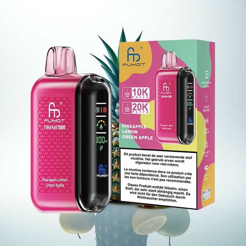 Fumot Tornado 20000 Puffs パイナップルレモングリーンアップルデュアルメッシュコイルスマートディスプレイ