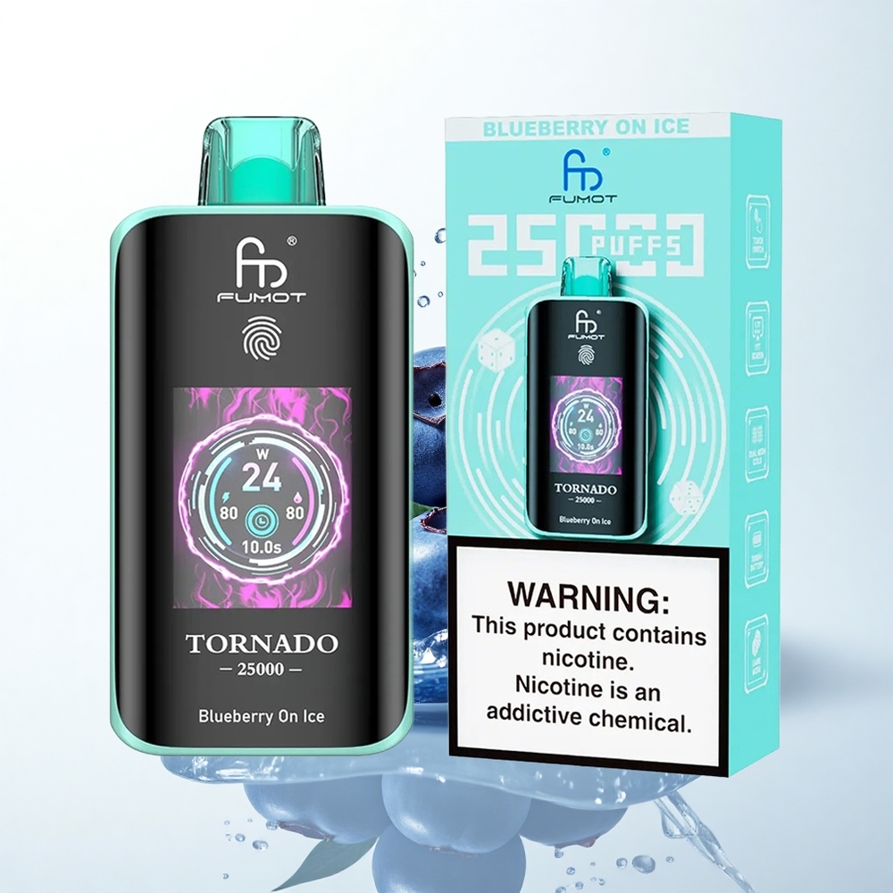 Fumot Tornado 25000 Puffs ブルーベリーオンアイス with HDスクリーン & タイプC充電