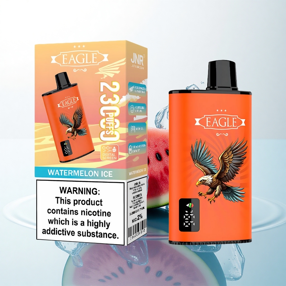 vape wholesale Japanで注目のJNR EAGLE Smart 23000 Puffsは、携帯性に優れながらもパフォーマンスを追求した逸品です。デジタルスクリーンで管理しやすく、メッシュコイルで風味を最大限に引き出します。調整可能なエアフローで自分だけの吸い方を楽しめ、大容量バッテリーとeリキッドで長くご利用いただけます。Type-C充電でストレスフリーな使い心地を実現しています。