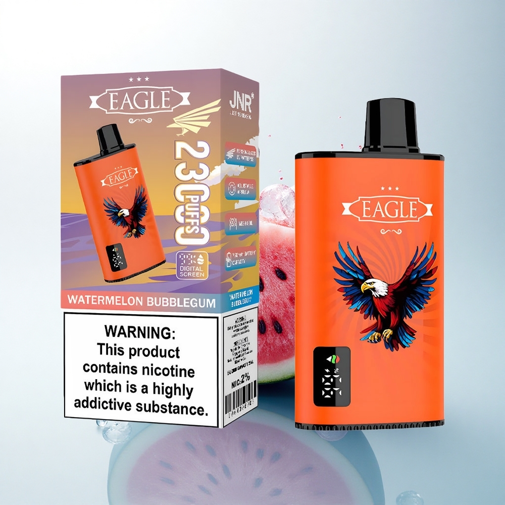 vape wholesale Japanで注目のJNR EAGLE Smart 23000 Puffsは、携帯性に優れながらもパフォーマンスを追求した逸品です。デジタルスクリーンで管理しやすく、メッシュコイルで風味を最大限に引き出します。調整可能なエアフローで自分だけの吸い方を楽しめ、大容量バッテリーとeリキッドで長くご利用いただけます。Type-C充電でストレスフリーな使い心地を実現しています。