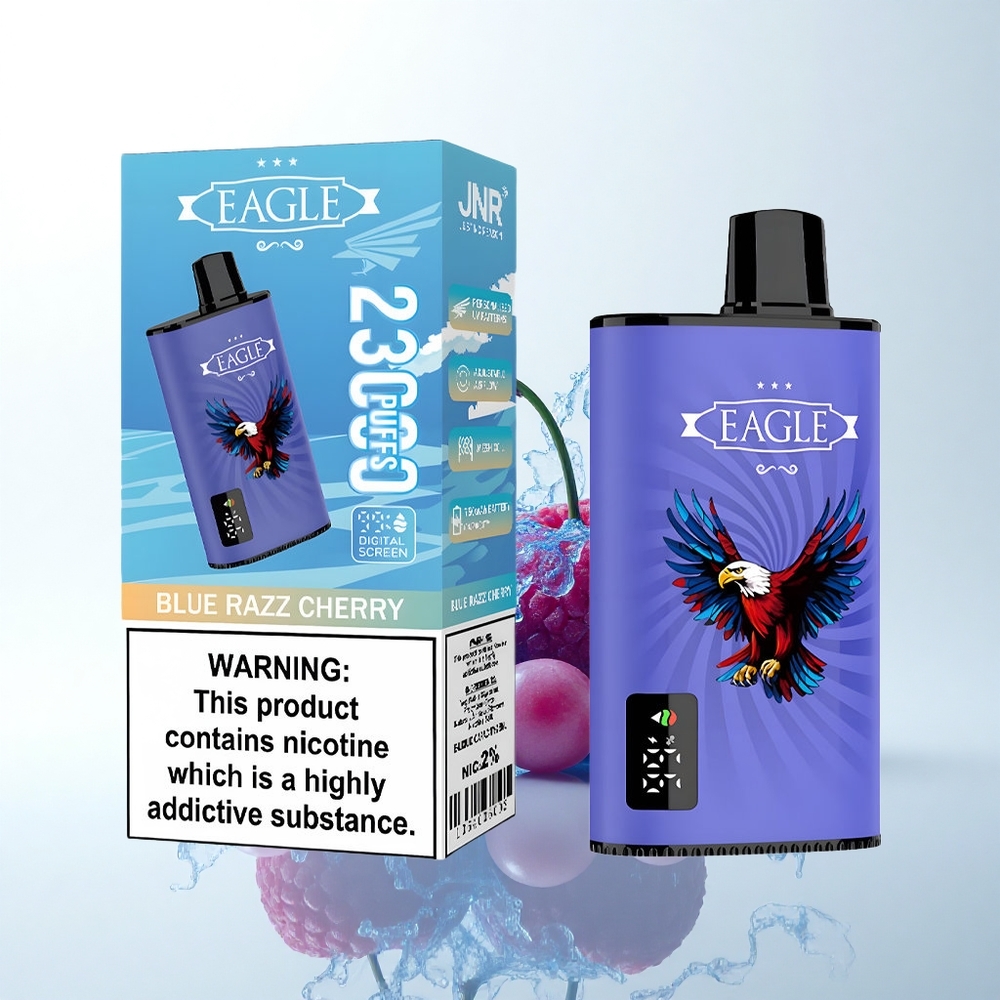 vape wholesale Japanで注目のJNR EAGLE Smart 23000 Puffsは、携帯性に優れながらもパフォーマンスを追求した逸品です。デジタルスクリーンで管理しやすく、メッシュコイルで風味を最大限に引き出します。調整可能なエアフローで自分だけの吸い方を楽しめ、大容量バッテリーとeリキッドで長くご利用いただけます。Type-C充電でストレスフリーな使い心地を実現しています。
