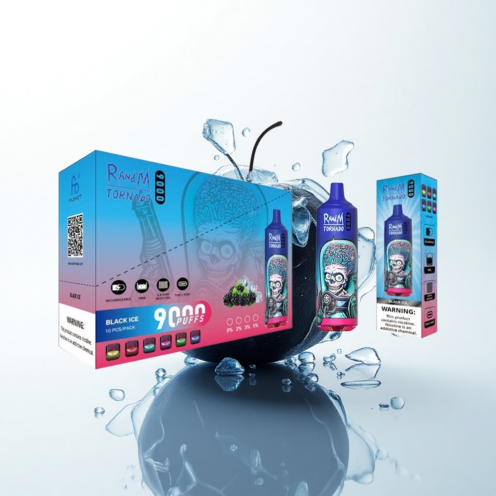 RandM Fumot Tornado 9000 Puffs 黒い氷 850mAh RGBメッシュ